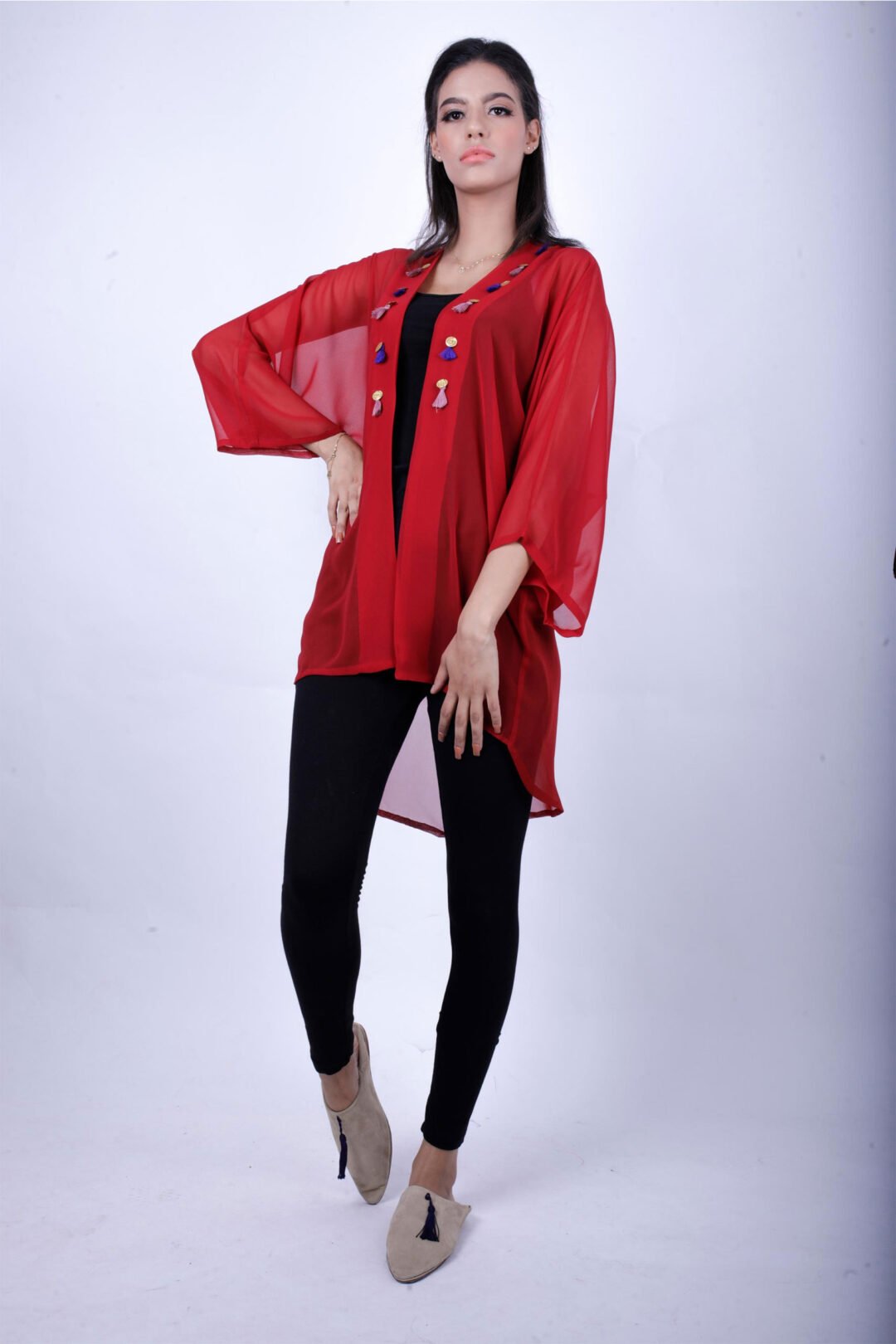 Tissu : crêpe léger rouge